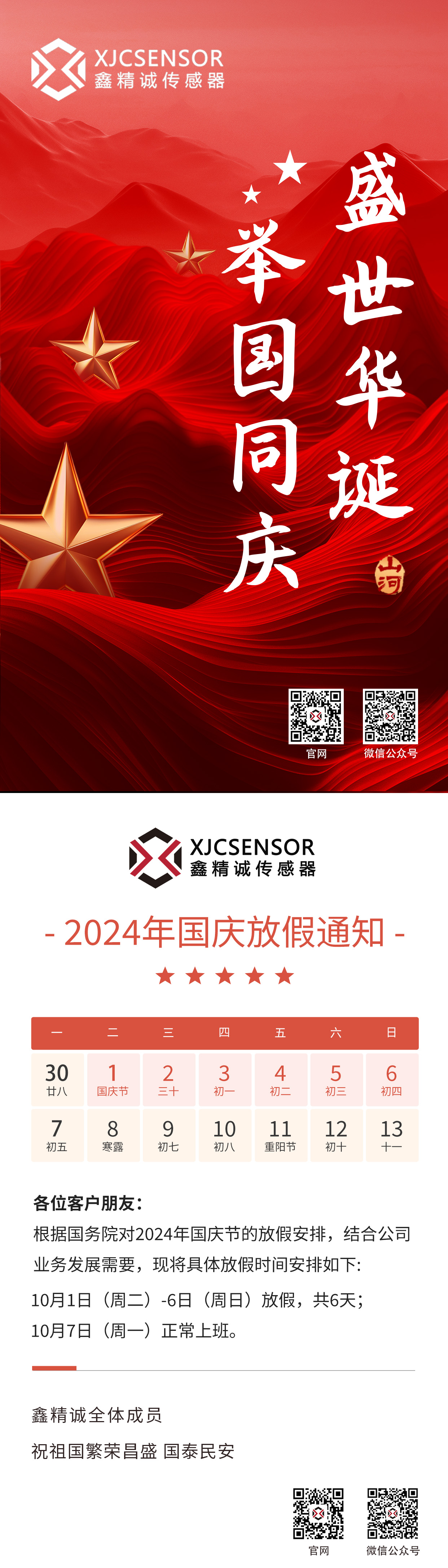 江山同慶,家國同夢 | 鑫精誠傳感器祝您國慶節快樂!