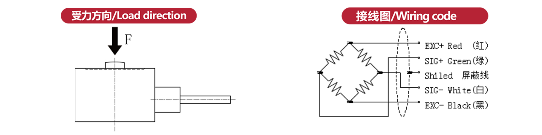 Ex+:紅;Ex-:黑;Sig+:綠;Sig-:白 |